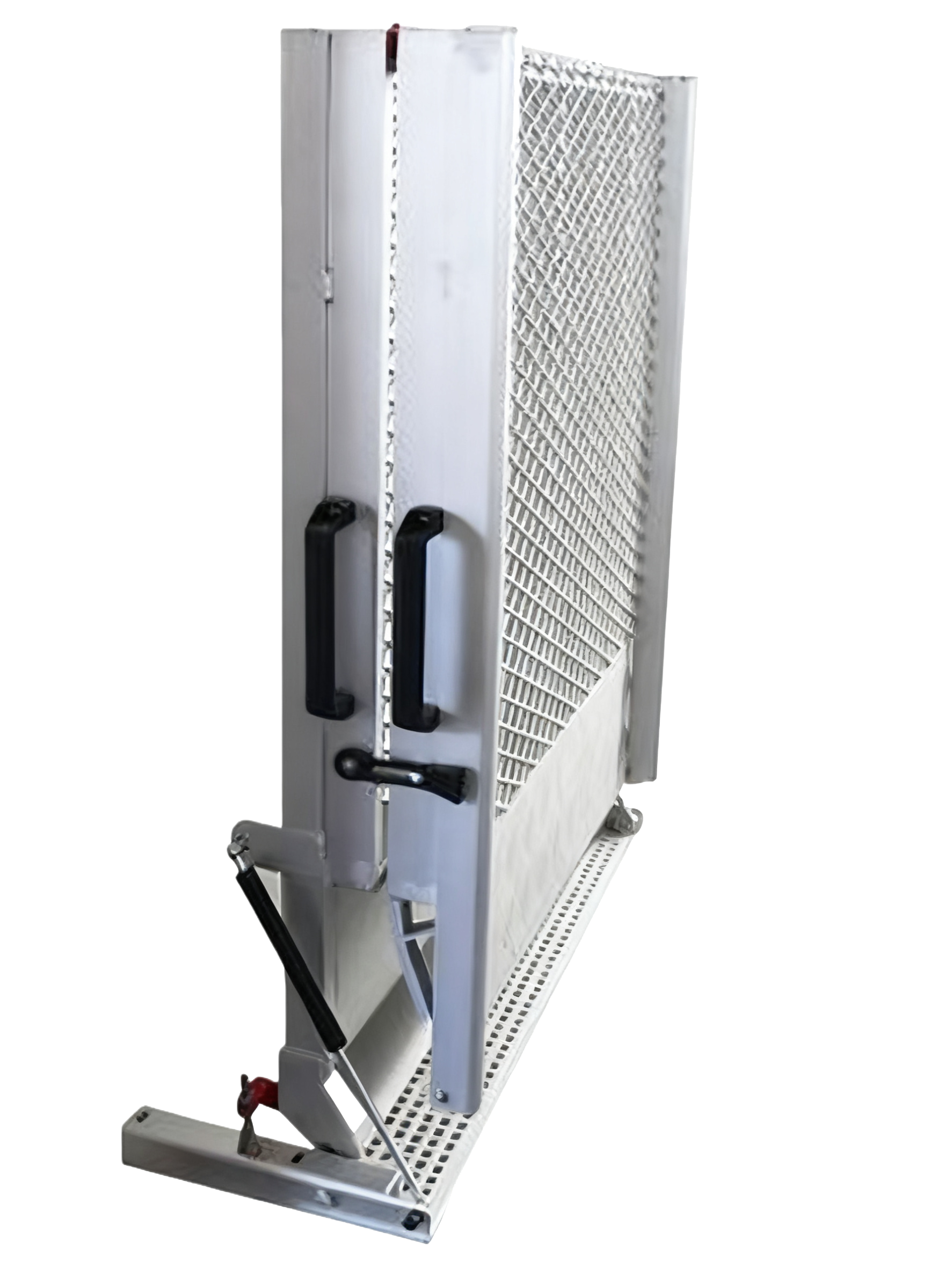 Gas spring supports and large pull handles are installed on both sides of the ramp panels.